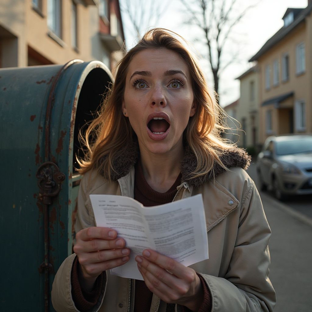 Анна стояла у своего почтового ящика, взгляд устремлён в неприметный конверт с пожелтевшими краями. Её стройная фигура казалась ещё более хрупкой на фоне старой облупившейся двери подъезда. Светлые волосы были собраны в неряшливый пучок, а глаза — глубокие, с оттенком усталой мудрости после долгого отпуска в маленькой деревне. Простая тёмно-синяя куртка, немного отчаянная поза и лёгкая неуверенность в каждом движении выдают человека, у которого в жизни не всё гладко.