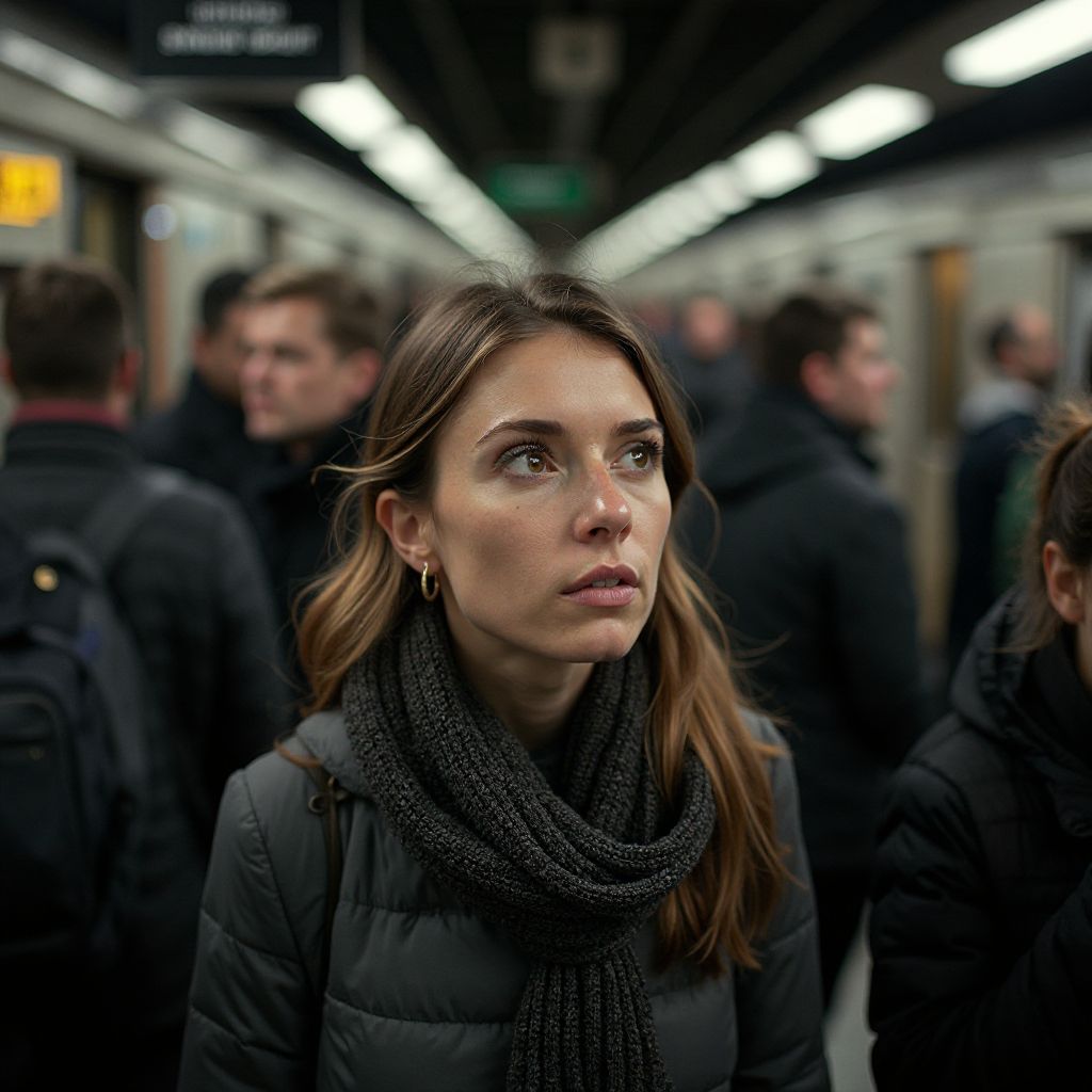 Её мысли путались, сердце переполнялось тревогой. Она беспрестанно оглядывалась, высматривая сквозь толпу лицо, которого здесь не должно было быть. Лицо, без которого ее дни превратились в нескончаемое тягостное ожидание. «Где он? Почему не появляется?» — шептала она себе, и ладони сжимались в лёгкий кулак. Рядом суетились люди — с детьми, с сумками, в деловых костюмах и ветхой одежде, но для Марины весь мир сузился до той единственной цели — найти именно его взгляд.