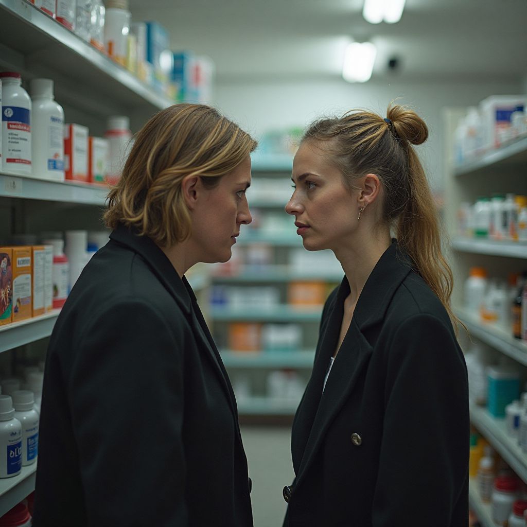 Утренний воздух был свеж и прохладен; в небольшую аптеку на окраине города стекалась смешанная, словно волны на берегу, толпа. За стеклянными дверьми пахло горечью лекарств и свежеиспечённым хлебом из соседнего магазина. Свет мягко распространялся сквозь занавески, отражаясь бликами на полках с медикаментами. Звуки разговоров сливались с приглушённым гулом проходящих мимо машин, а слабый ветерок шевелил страницы газеты, оставленной на скамейке у входа. Город просыпался, но за стенами аптеки тихо витала напряжённость, неуловимая и настораживающая.