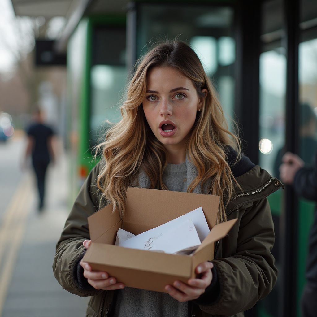 Вдруг среди мусора, валявшегося у края бордюра, её взгляд упал на старую, немного помятую картонную коробку. «Что это?» — прошептала она, осторожно отодвигая ветки и остатки бумаги. «Может, кто-то потерял… или оставил намеренно?» — её голос дрожал. Один из прохожих, заметив её интерес, подошёл ближе и сказал: «Смотри, там что-то лежит, как будто кто-то забыл.»