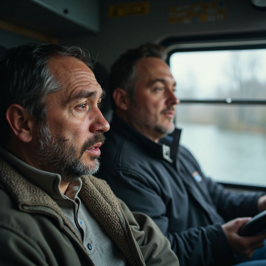 Мысли его метались, как буря — воспоминания о потерянном близком, о несправедливости и холодном равнодушии мира. Он тихо повторял себе, что нужно быть сильным, но сердце болело, и душа не находила покоя. Поездка на этом автобусе должна была стать началом новой жизни, но страх и отчаяние сжимали грудь как железный капкан. Он не ожидал, что сегодня все перевернется.