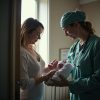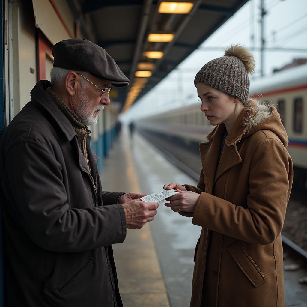 Женщина, одетая в простое пальто и ботинки, держа в руках тяжёлую сумку, бросила на записку быстрый взгляд, молча кивнула и прижала её к груди. В её глазах отражалась смесь удивления, недоверия и надвигающейся тревоги. «Почему именно я?» — мелькнула мысль. Старик отвёл взгляд, словно не желая вовлекать посторонних в эту тайну, и сказал: «Трактовать слова нельзя, пока поезд не тронется… Ты должна довериться». Внешний мир продолжал стремительно мелькать за мокрыми окнами, но в вагоне повисло напряжённое молчание.
