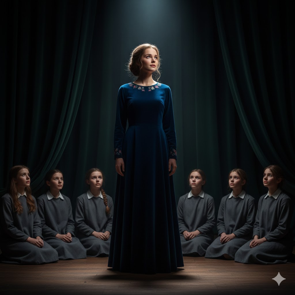 Она сделала шаг вперёд, потом ещё один, чувствуя, как пол под ногами скрипит, словно сопротивляясь её движению. Каждый шаг отдавался в висках, а свет сцены становился всё ярче, всё беспощаднее. За кулисами кто-то перешёптывался, не скрывая любопытства и злорадства, и эти шёпоты тянулись за ней, как липкая паутина. Но когда она поднялась на сцену, зал внезапно затих, словно кто-то выключил звук, оставив только её дыхание и гул крови в ушах.