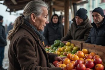 На рынке, залитом серым осенним дождём, запах плесневелых яблок и выхлопных газов смешивался с сыростью.