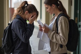 Раннее утро окутало школьный двор дождливой серой пеленой — мокрый асфальт блестел под тусклым светом
