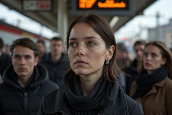 Под ярким, холодным светом неоновых ламп вокзала, обдаваемого резким ветром поздней осени, женщина стояла
